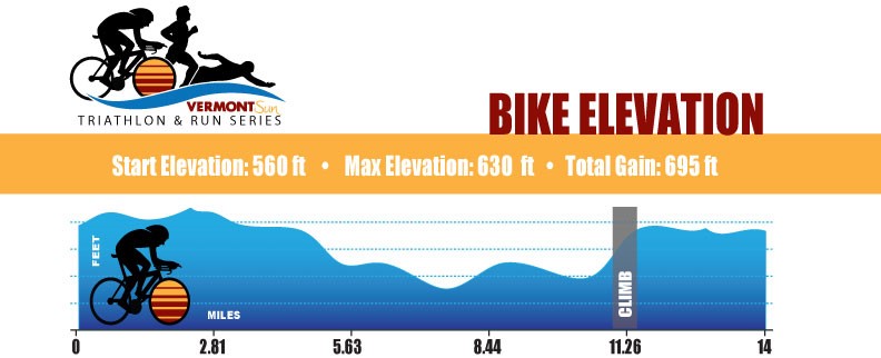 A one loop rolling course around Lake Dunmore and Fern Lake. There is one decent 190-foot climb over 3/4 of a mile that tops out at 7%. Total gain is 695 feet. The roads are in excellent condition and are as scenic as any you will find. Traffic is extremely light on all the roads except Rt 7 where there is a wide shoulder. Officers and Marshals will be on the extremely well marked, safe course which consists of only right-hand turns, never crossing traffic.